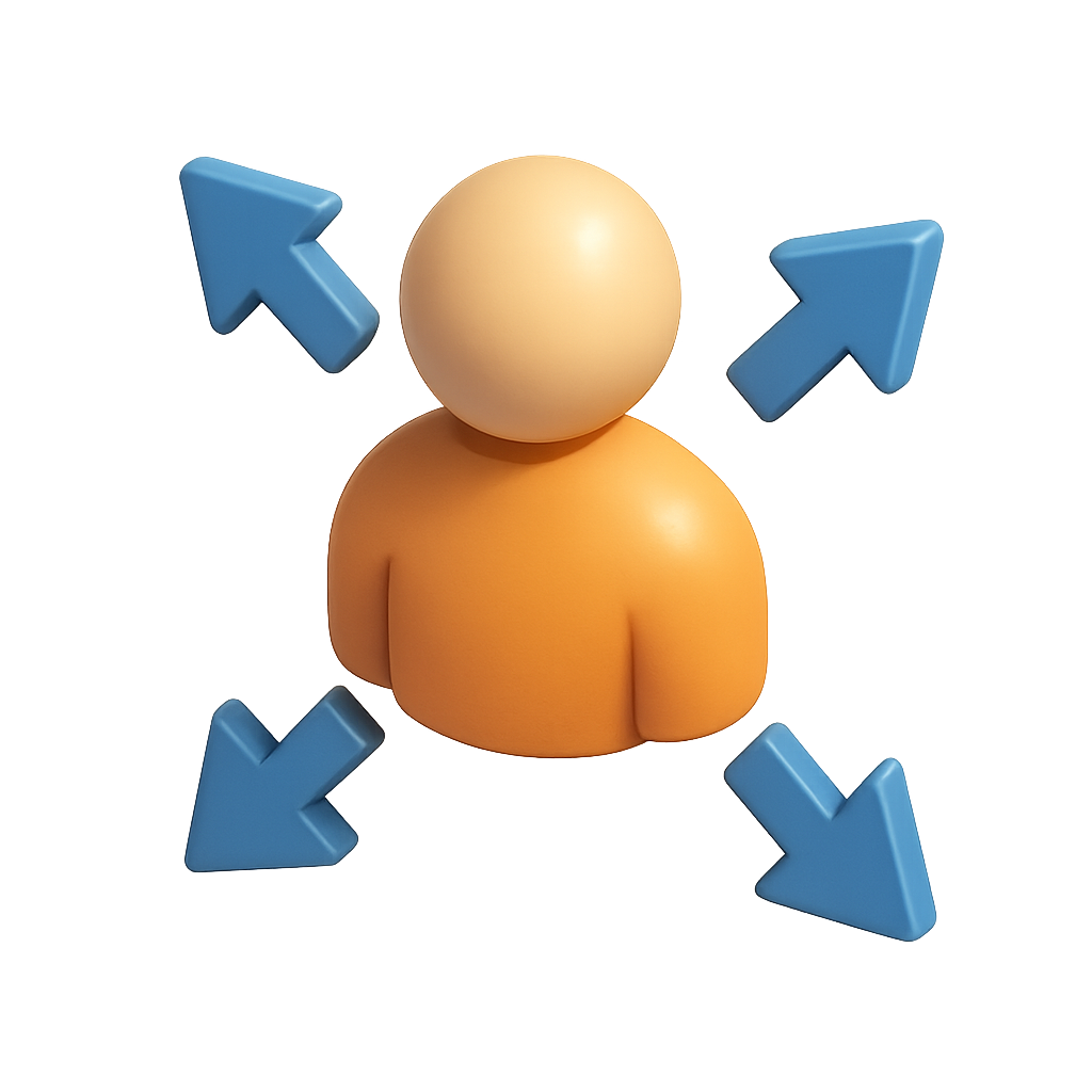 3D User Icon with Outward Arrows in Isometric View