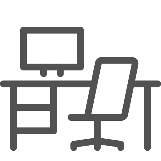outline simple icon: chair, computer, desk, furniture, monitor