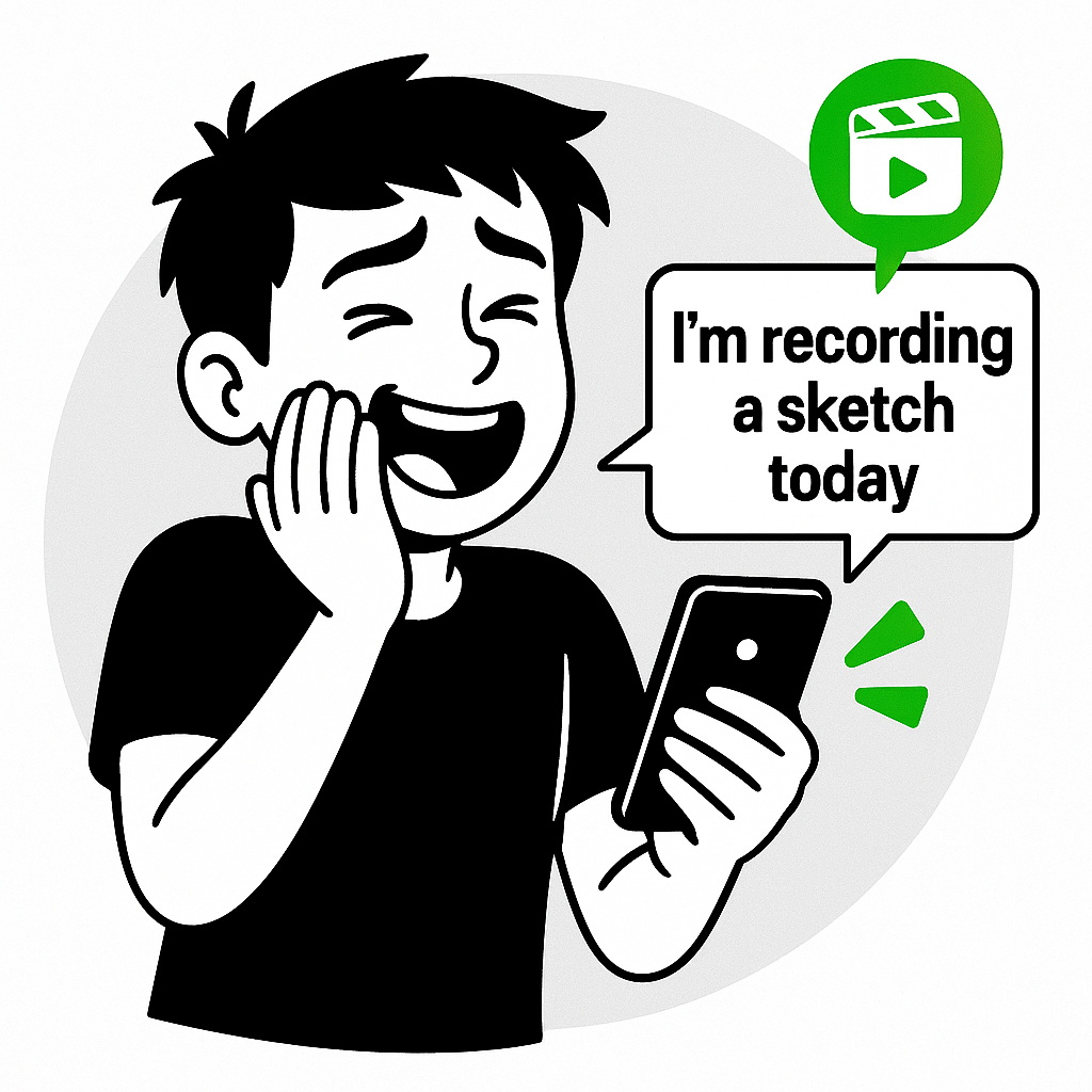 Illustrative Graphic of a Happy Character Recording a Sketch