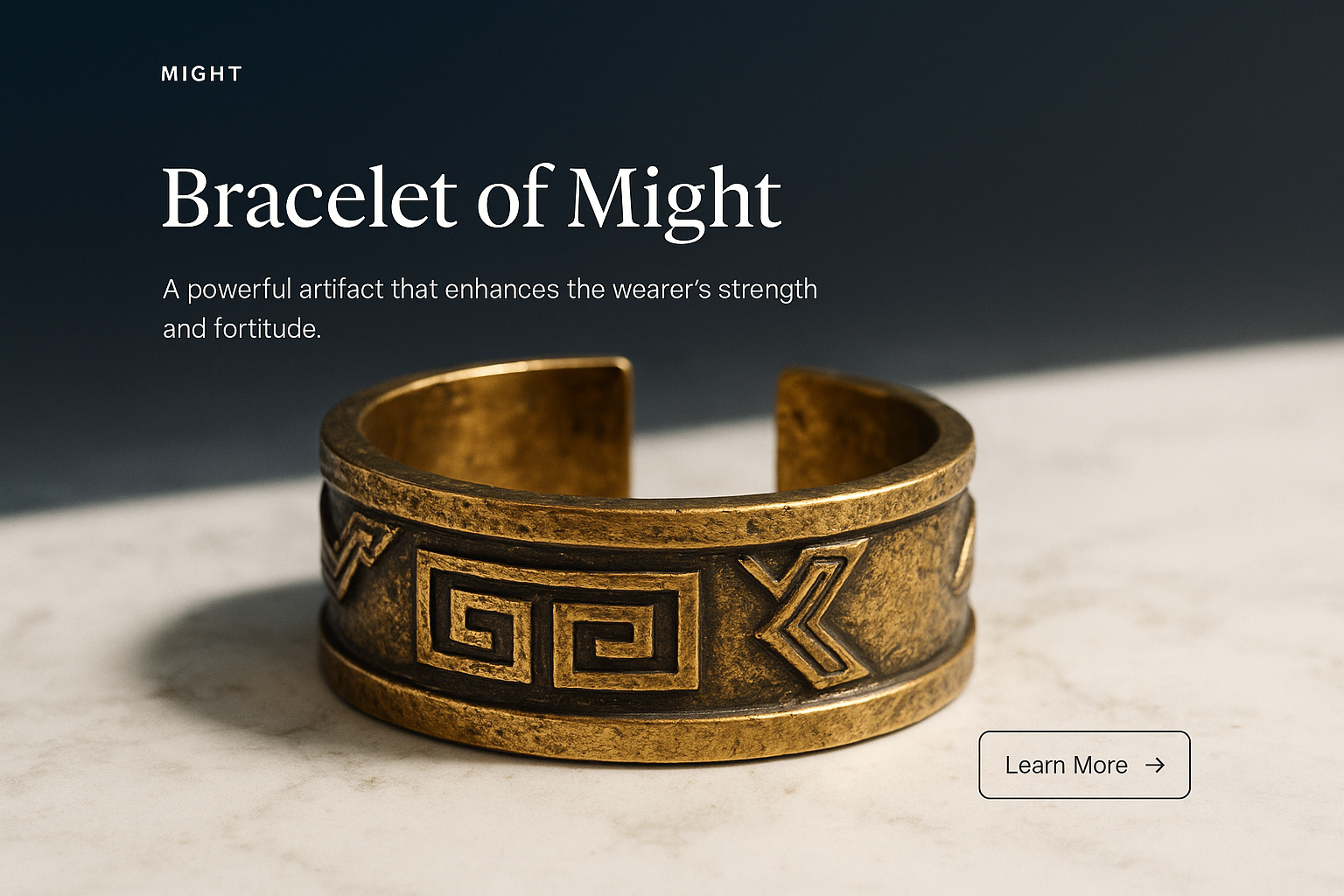 A detailed image of a bronze bracelet featuring intricate designs, symbolizing strength and power. The background is a soft gradient, enhancing the bracelet's visual appeal.