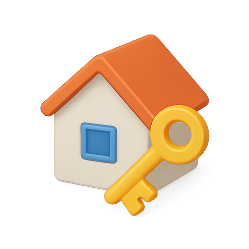 /Collection: /by davooda/Type: PNG/A colorful graphic representation of a house and a key, symbolizing home ownership or real estate concepts. The design features a modern and playful style, suitable for digital applications.