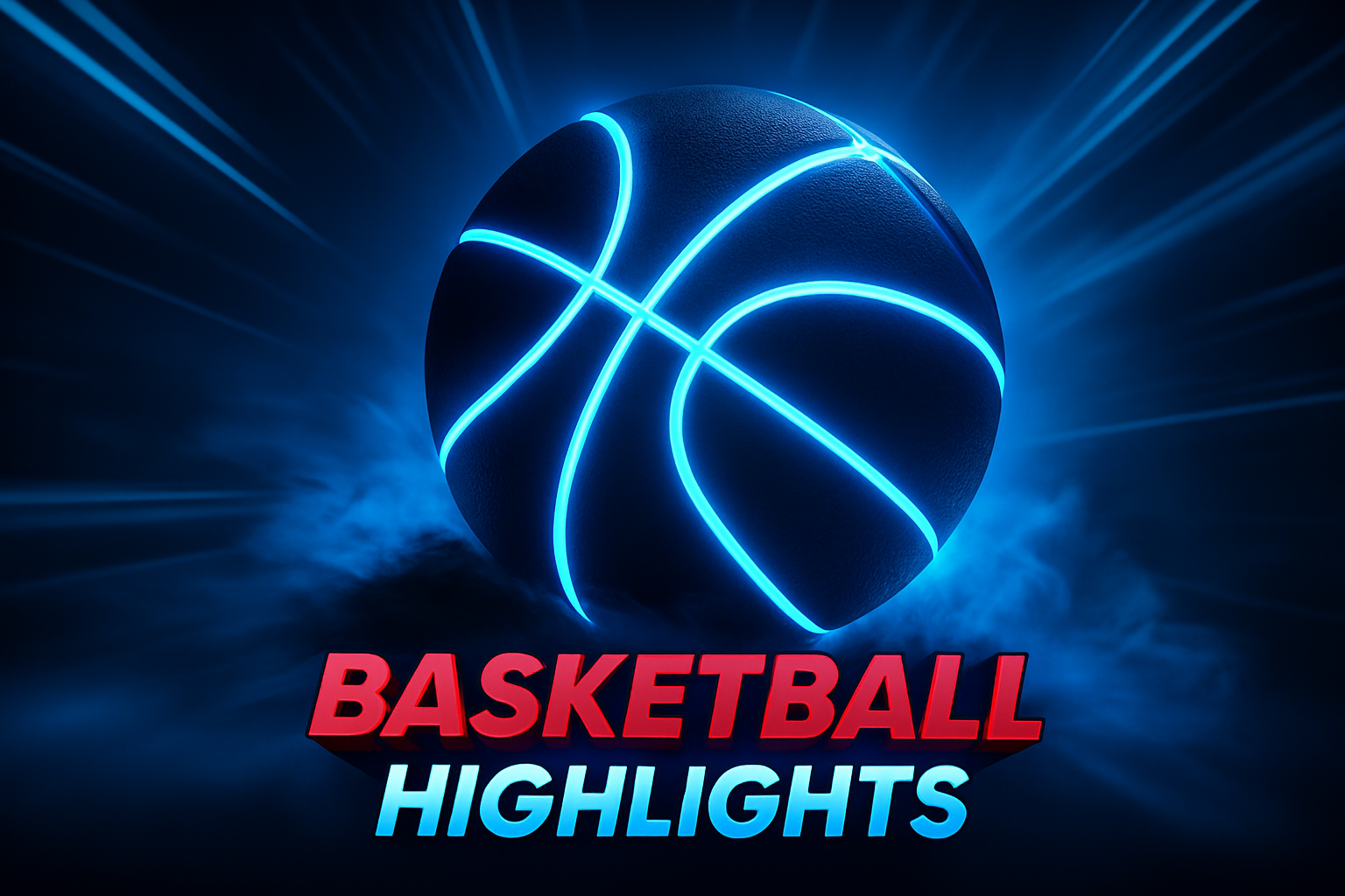Dynamic Neon Basketball with Glowing Lines and Smoke Effects