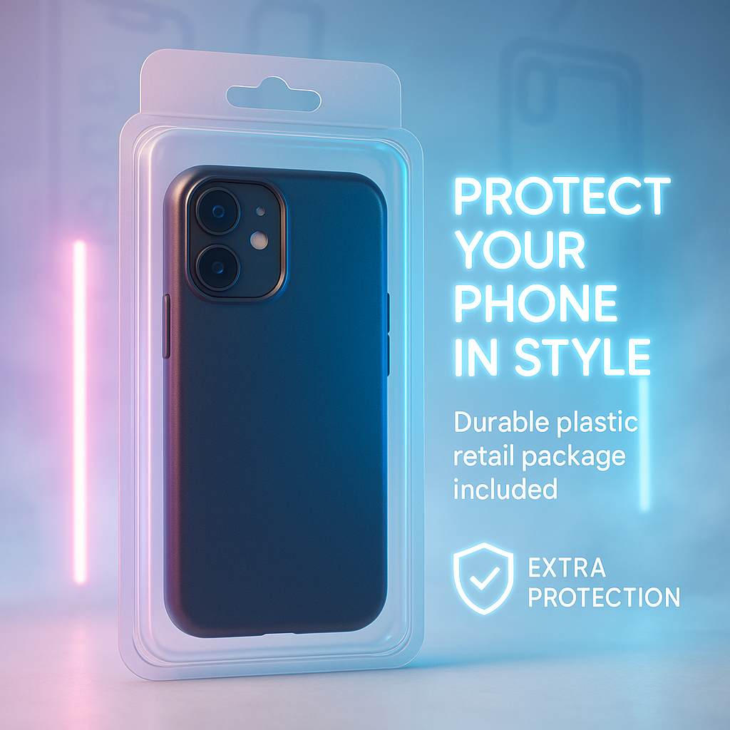Sleek product packaging for a phone case featuring a modern design. Ideal for e-commerce and retail environments, showcasing the product attractively.
