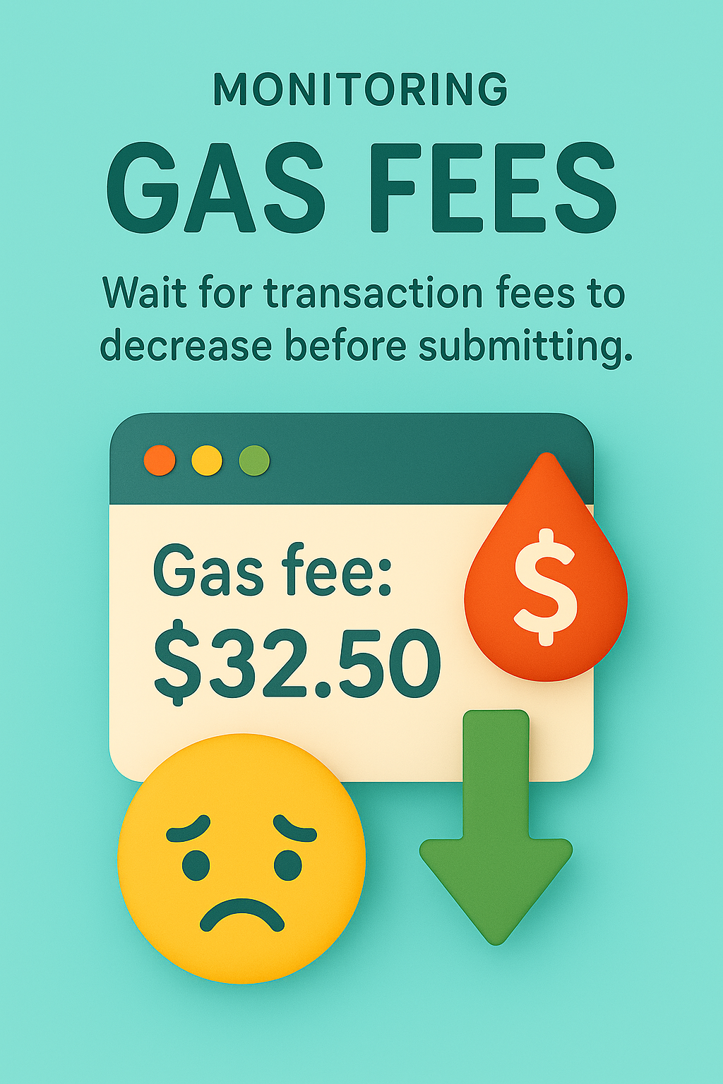 /Collection: /by davooda/Type: PNG/A visually engaging graphic illustrating the concept of monitoring gas fees with playful icons, perfect for educational content on cryptocurrency transactions.