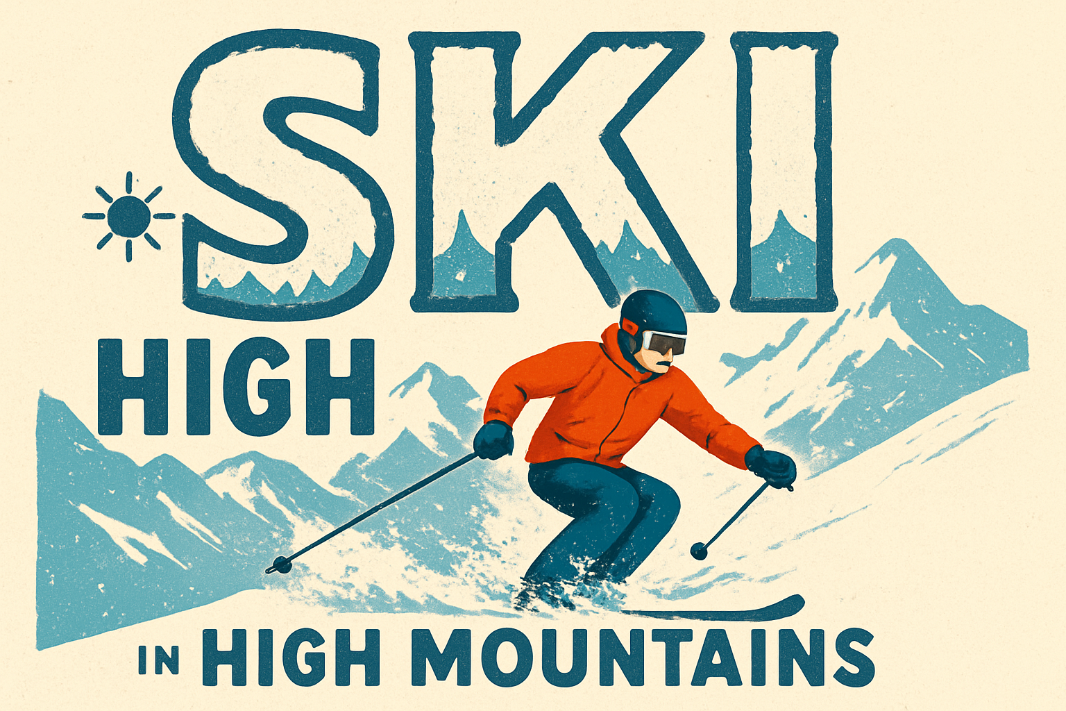 Vintage Skiing Illustration with Bold Typography