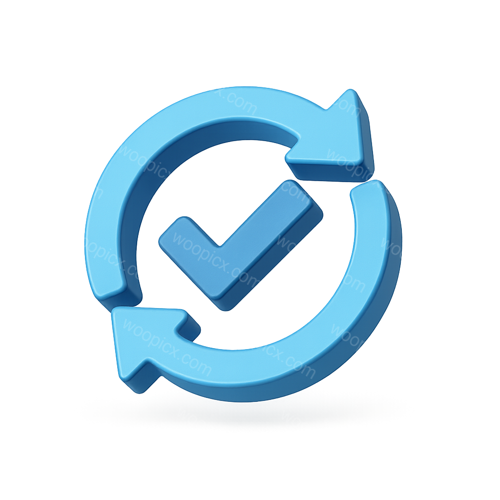 A three-dimensional blue icon representing a closed loop with arrows and a checkmark. The design features a glossy finish and is presented in a three-quarter view on a light background.