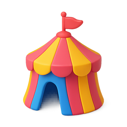 /Collection: /by davooda/Type: PNG/A playful 3D rendering of a colorful tent designed for children's play. The tent features a vibrant red, yellow, and blue color scheme, making it visually appealing for kids. Ideal for use in marketing materials related to children's toys or play areas.