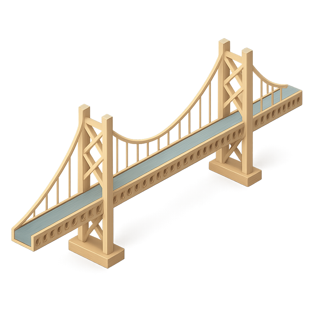 /Collection: /by davooda/Type: PNG/A stylized 3D icon of the Akashi Bridge, represented in a three-quarter view. The design features a wooden structure with volumetric elements and a transparent background.
