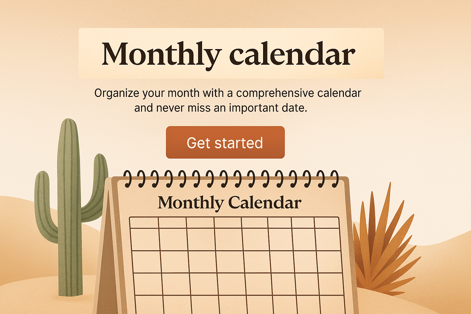 /Collection: /by davooda/Type: PNG/A visually appealing boho-style monthly calendar design featuring a simple backdrop, inviting headline, and a call-to-action button. The earthy tones and minimalistic elements create a professional yet engaging aesthetic.