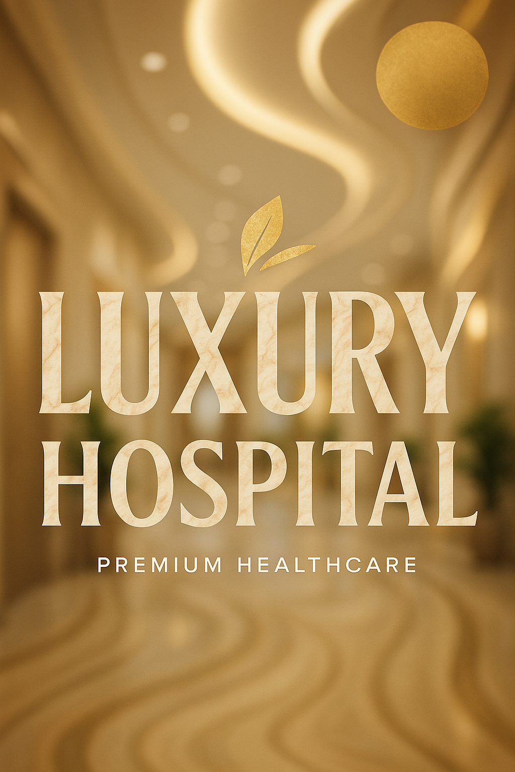 Sophisticated branding image for a luxury hospital, featuring elegant typography and a refined color palette, ideal for conveying premium healthcare services.