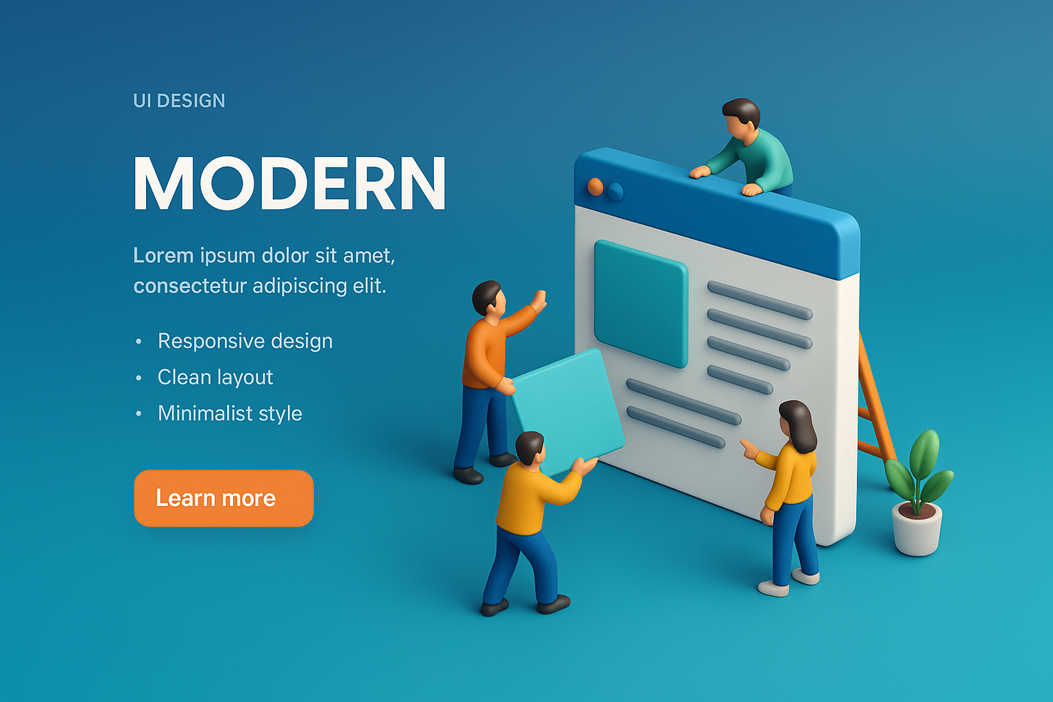 Modern 3D Scene with Miniature Characters in a UI Design Setting
