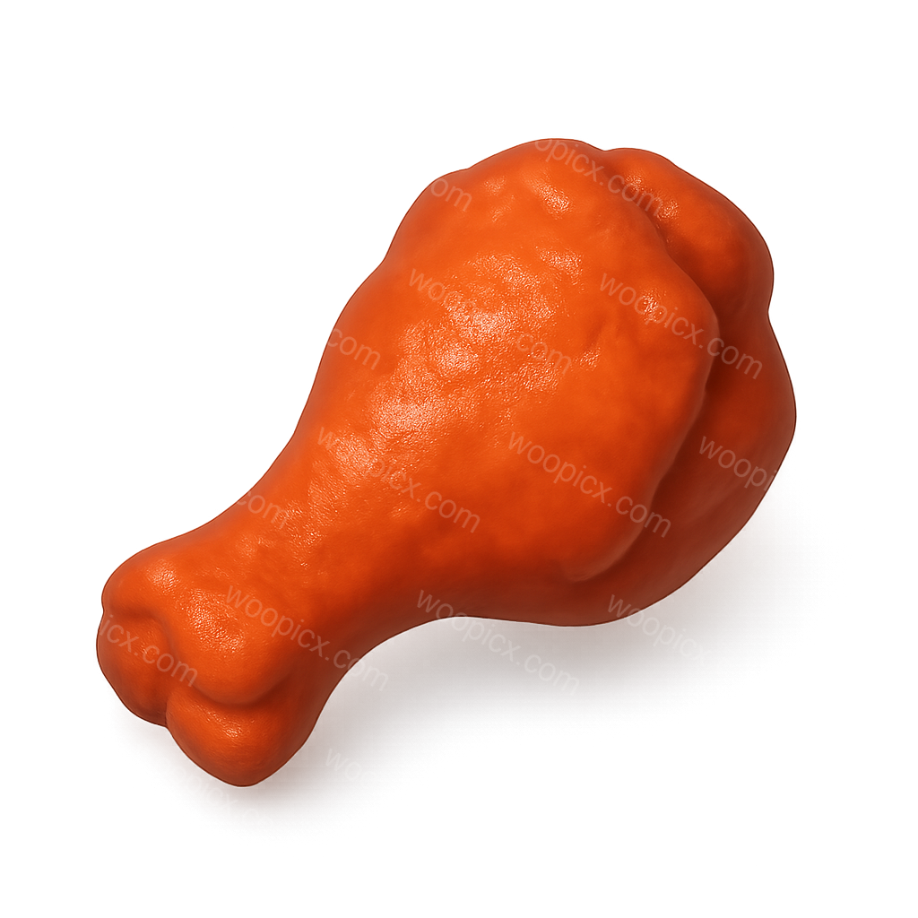 /Premium/Collection: /by davooda/Type: PNG/This image features a stylized 3D representation of a buffalo wing, showcasing a vibrant orange color and a glossy texture. The design captures the essence of a buffalo wing in a three-quarter view with a volumetric feel, set against a transparent background.