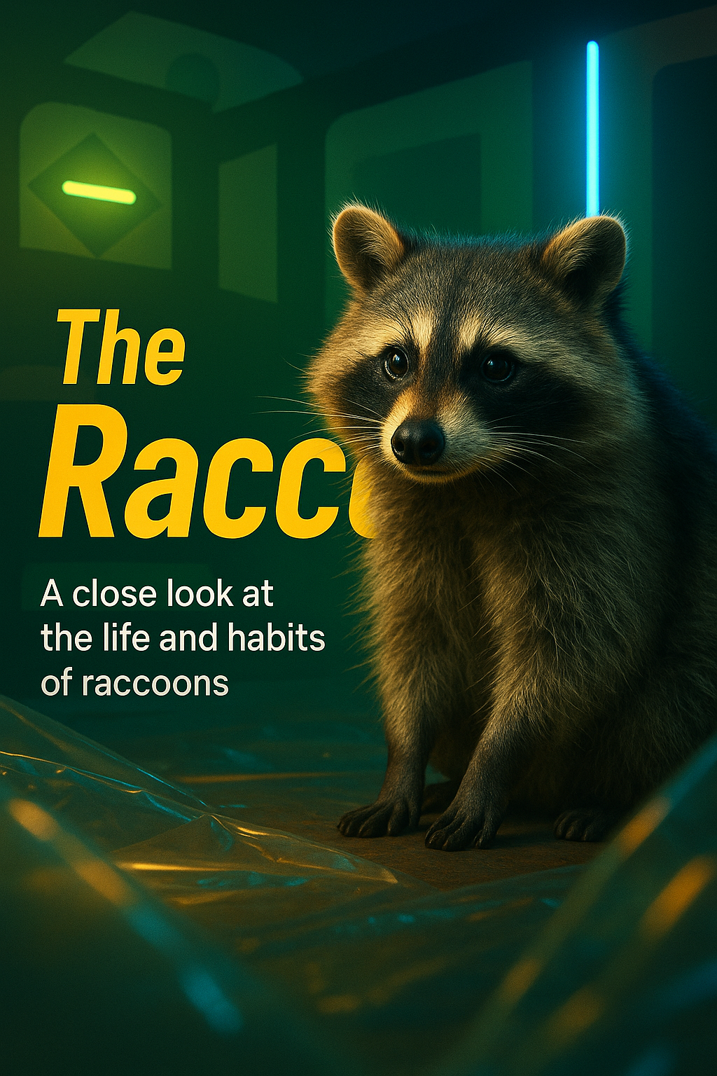 /Collection: /by davooda/Type: PNG/An engaging visual featuring a raccoon, highlighting its life and habits within a contemporary environment. Ideal for educational content or wildlife documentaries.