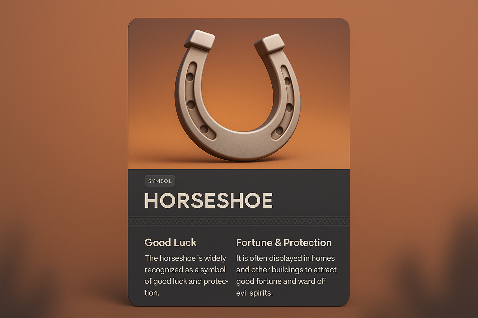 A 3D illustration of a horseshoe, symbolizing good luck and protection, integrated into a sleek design with a gradient background and informative text blocks.