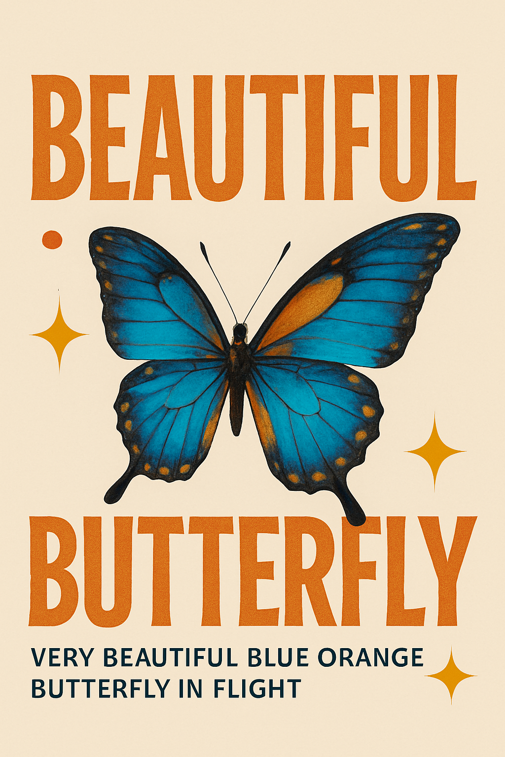 /Collection: , /by davooda/Type: PNG/Colorful illustration featuring a blue and orange butterfly against a soft background, complemented by playful typography. Ideal for nature-themed decor or educational materials.