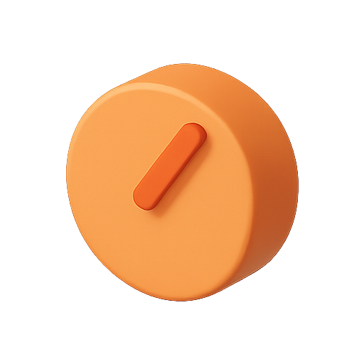 Stylized graphic of a round orange button featuring a prominent toggle, ideal for user interface design or digital product mockups.