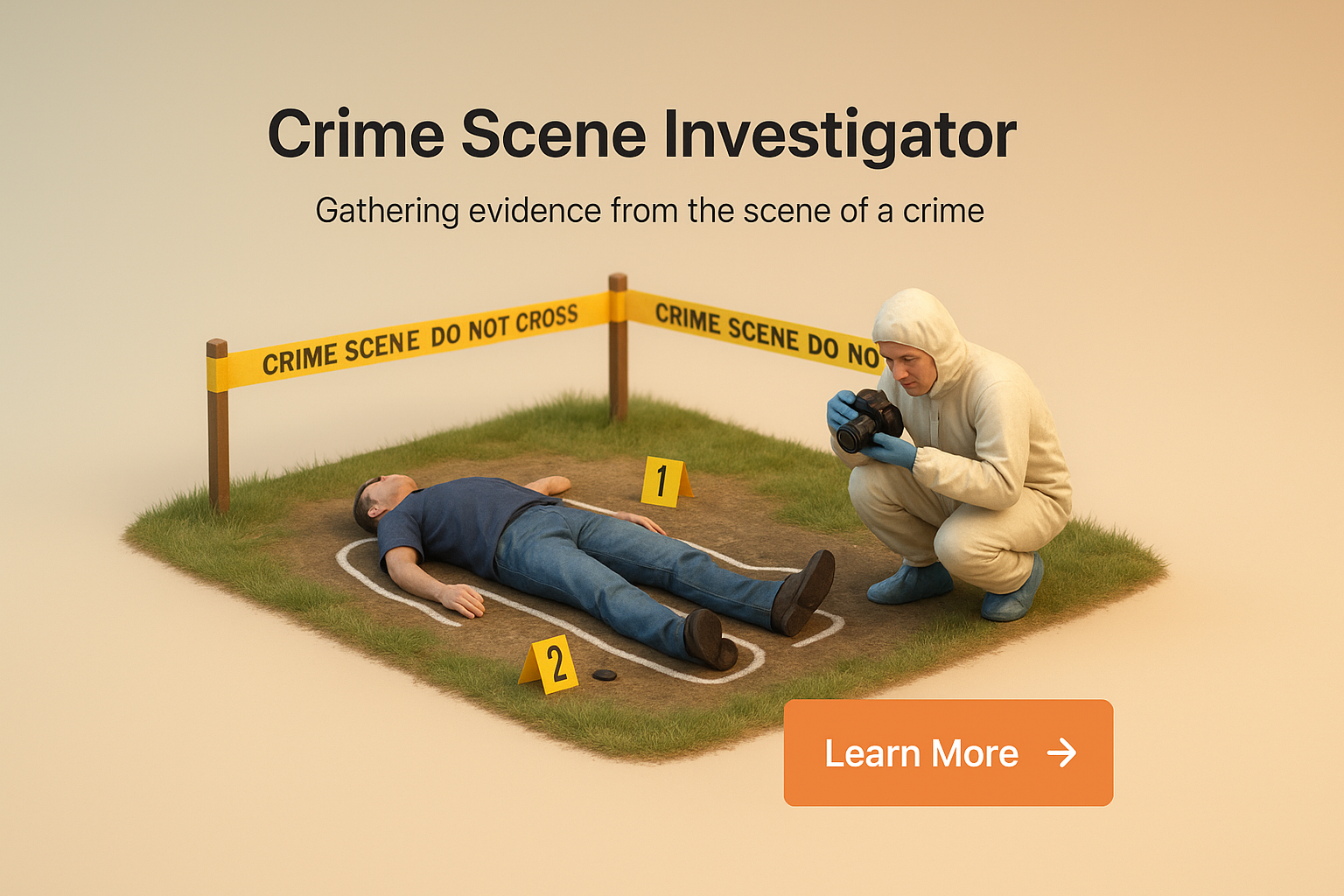 /Collection: /by davooda/Type: PNG/A realistic 3D scene depicting a crime scene investigator collecting evidence at a crime scene with a body and evidence markers, designed with a smooth gradient background.