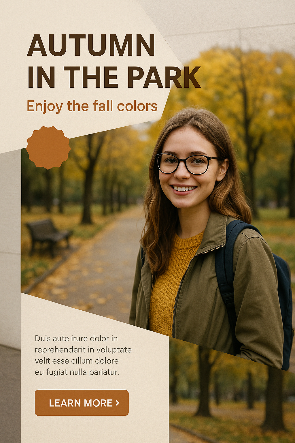 Dynamic Autumn Park Advertisement Featuring Student Girl