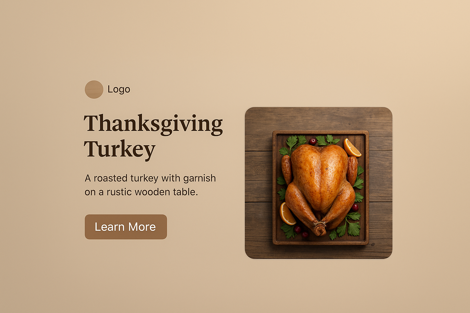 Thanksgiving Turkey on Rustic Table with Recipe Call to Action