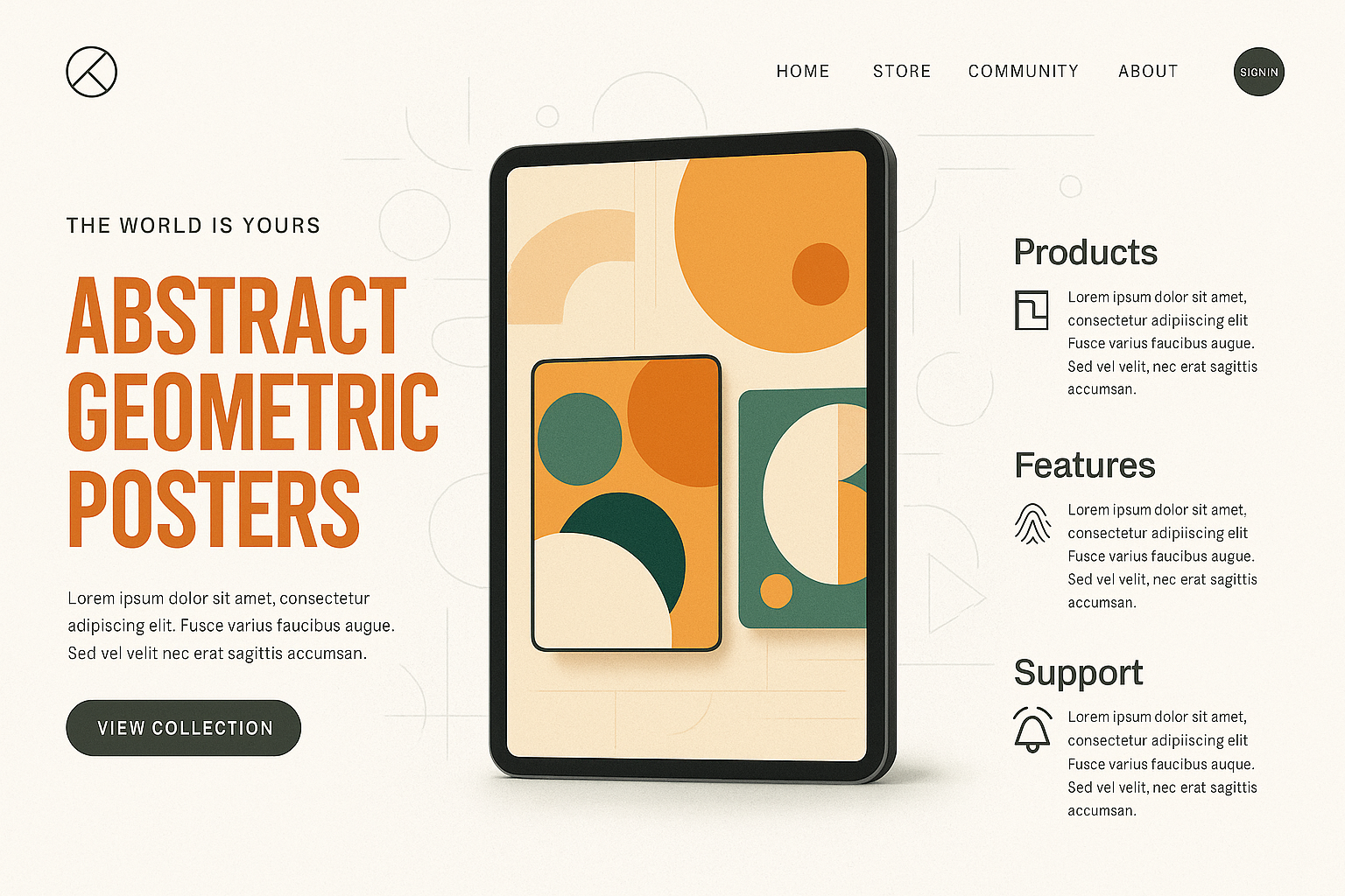 Modern Landing Page Design Featuring Abstract Geometric Posters