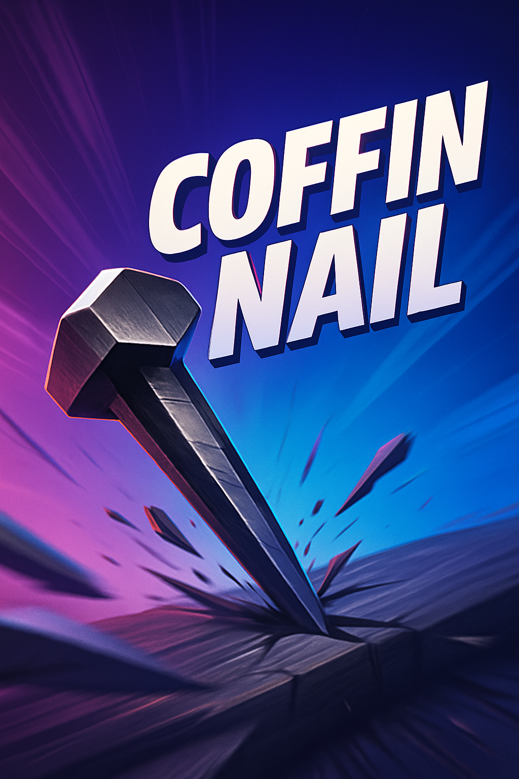 /Collection: /by davooda/Type: PNG/An engaging 3D illustration of a coffin nail explosively breaking through a surface. The background features a smooth gradient transitioning from purple to blue, enhancing the dynamic effect.