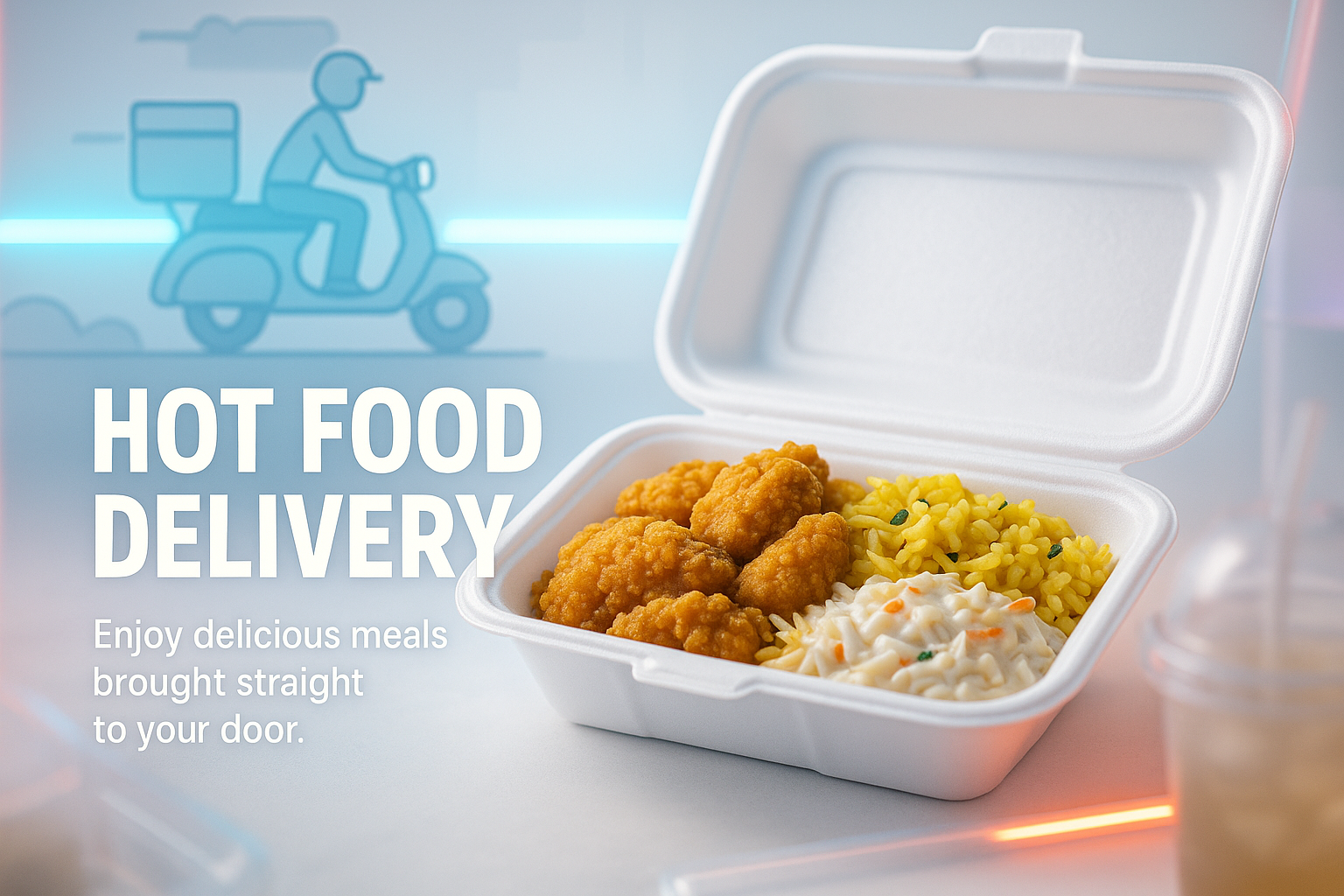 Food Delivery Service Promotional Image Featuring Hot Meals