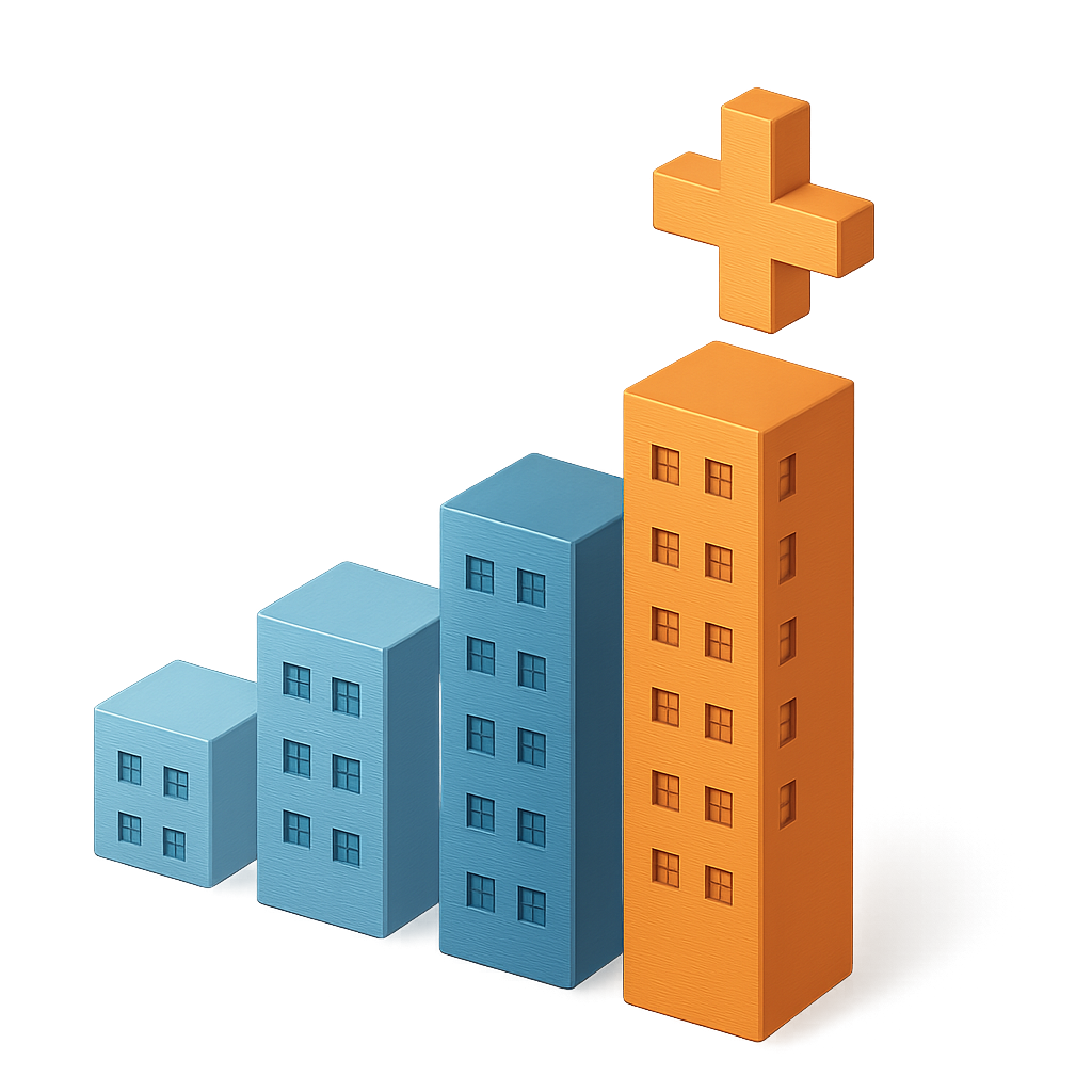 /Collection: /by davooda/Type: PNG/A visually striking 3D isometric bar graph featuring buildings in varying heights. The graph is designed with a volumetric feel, showcasing blue and orange hues.