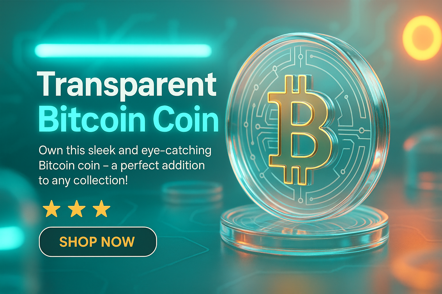 3D Render of a Transparent Bitcoin Coin for Cryptocurrency Promotion