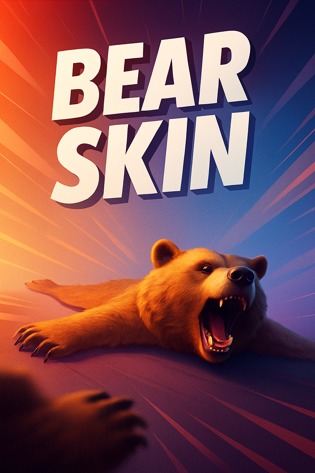 /Collection: /by davooda/Type: PNG/A striking 3D illustration of a bear skin, featuring bold typography and dynamic rays emanating from the center. The background transitions smoothly from gradient to solid color, enhancing the visual impact.