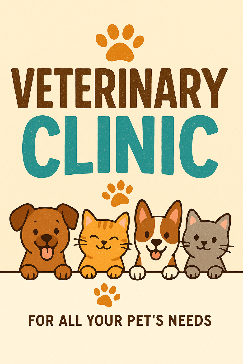 Playful Veterinary Clinic Promotional Graphic Featuring Pets