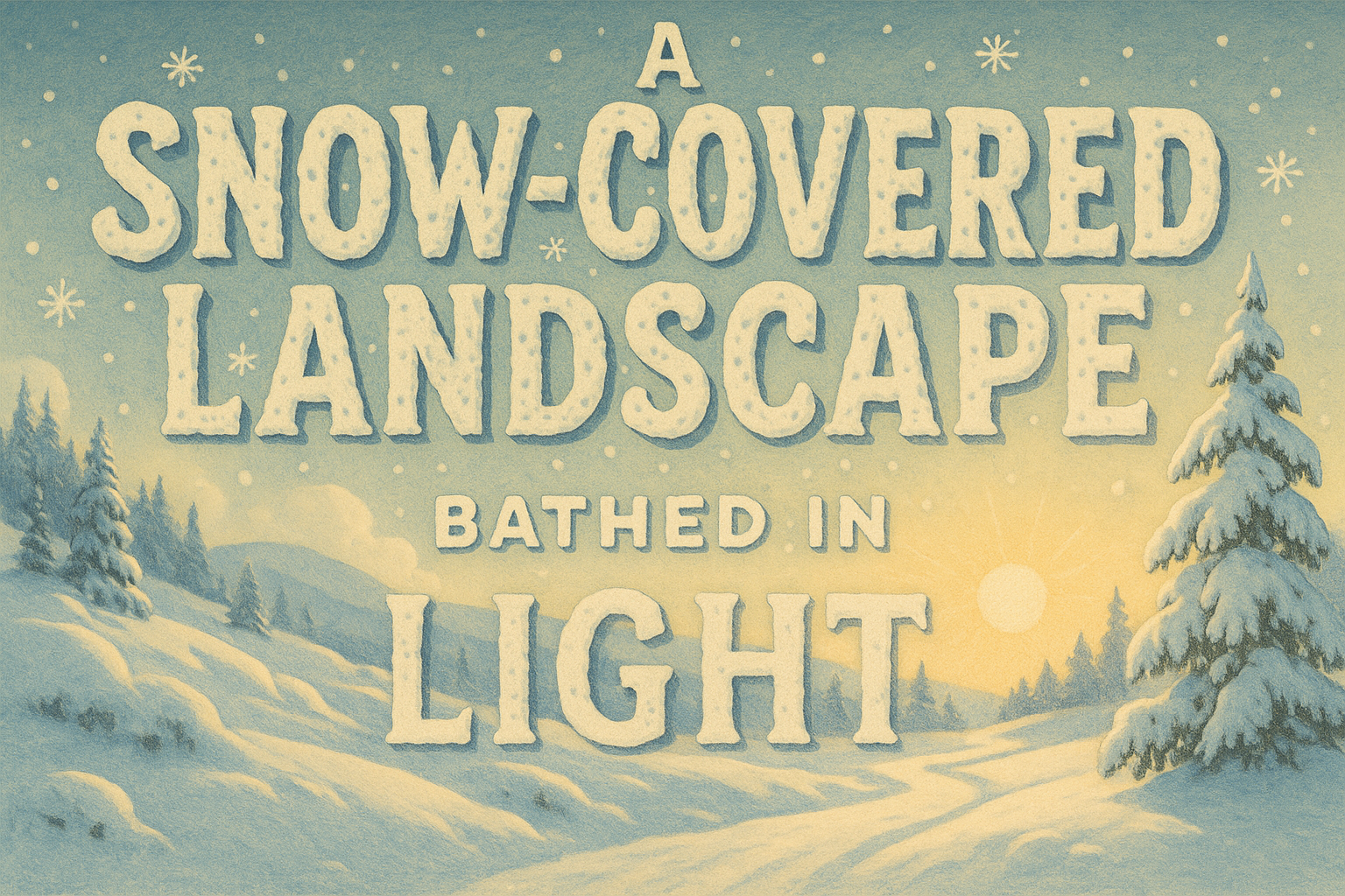 Charming illustration of a snow-covered landscape illuminated by soft light, perfect for seasonal decor or winter-themed projects.