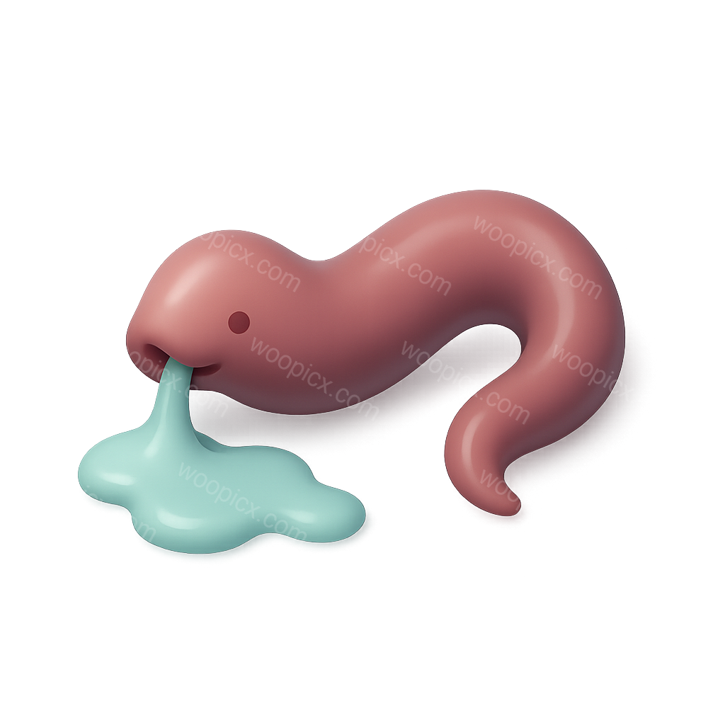 /Premium/Collection: /by davooda/Type: PNG/A stylized 3D icon of a hagfish, depicted in a three-quarter view with a smooth, glossy finish. The creature is shown producing a blue slime, enhancing its unique characteristics.
