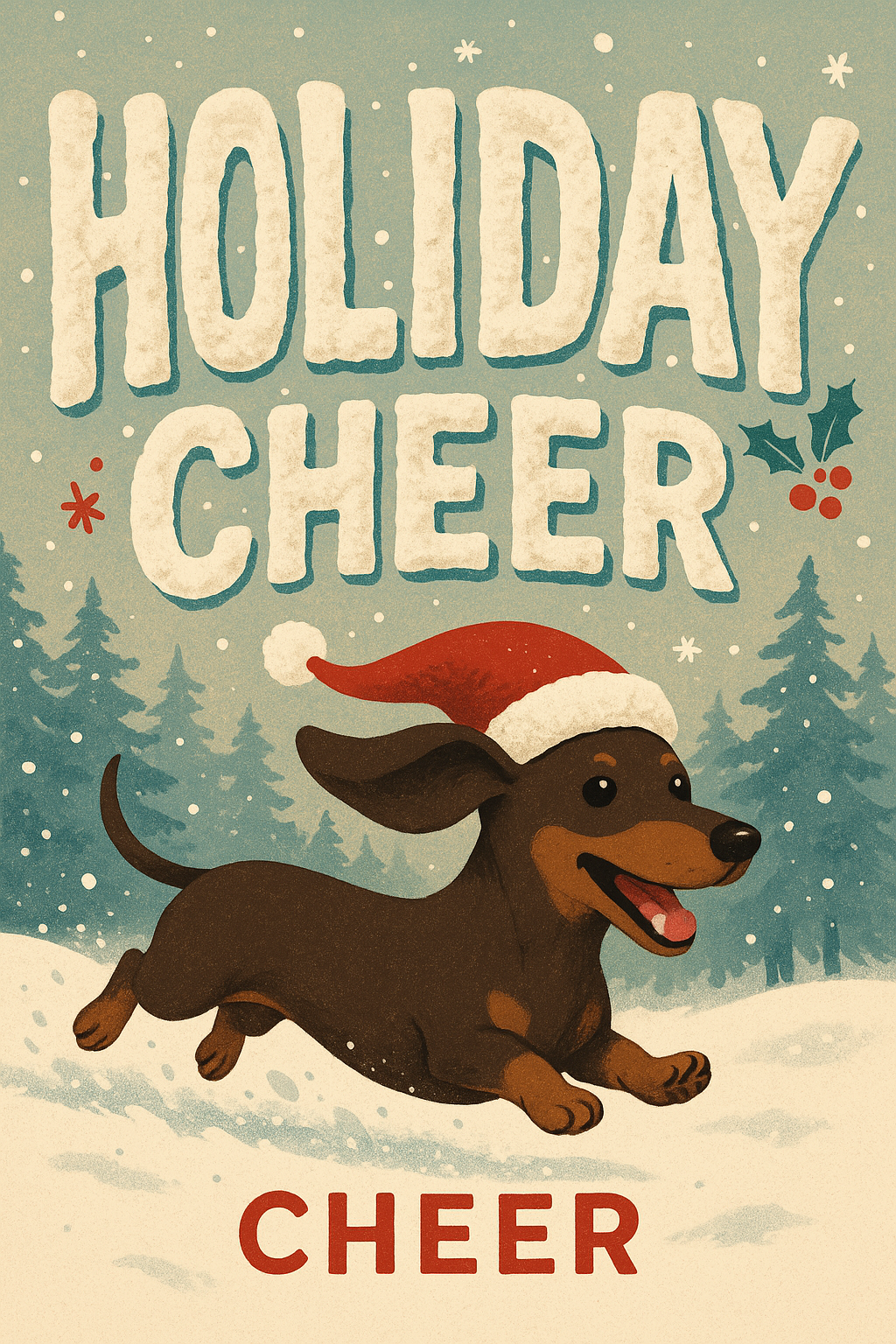 Festive Holiday Illustration Featuring a Dachshund in a Santa Hat