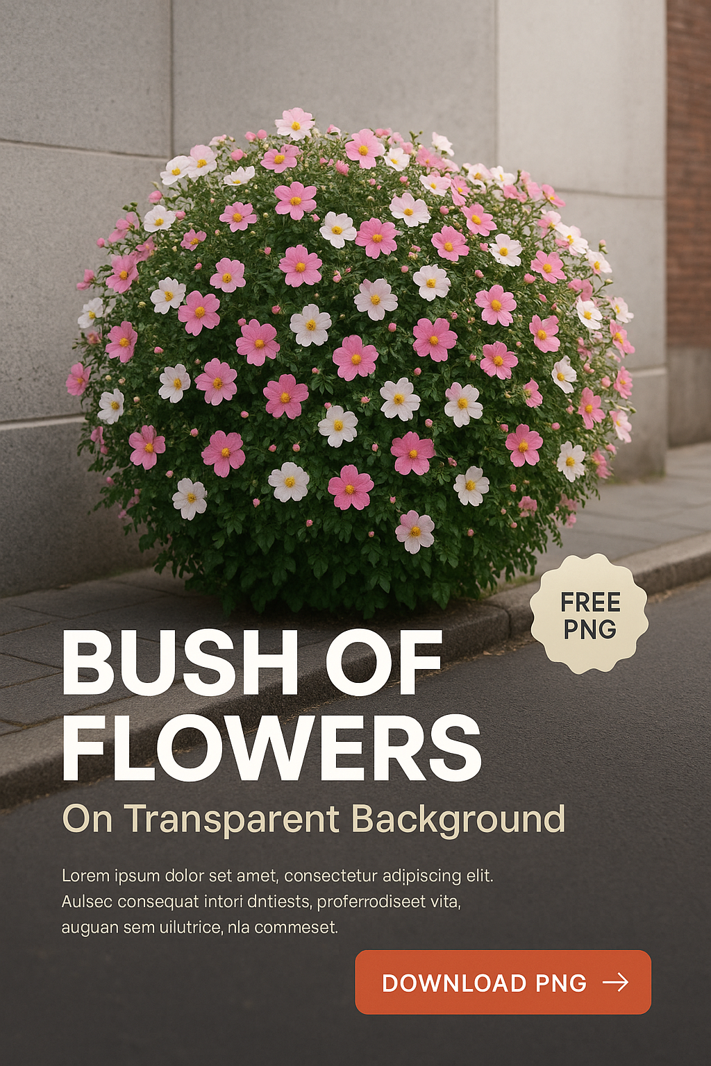 A bush full of colorful flowers set against a non-transparent background, featuring a clear hierarchy and balanced composition. Includes a call-to-action button.
