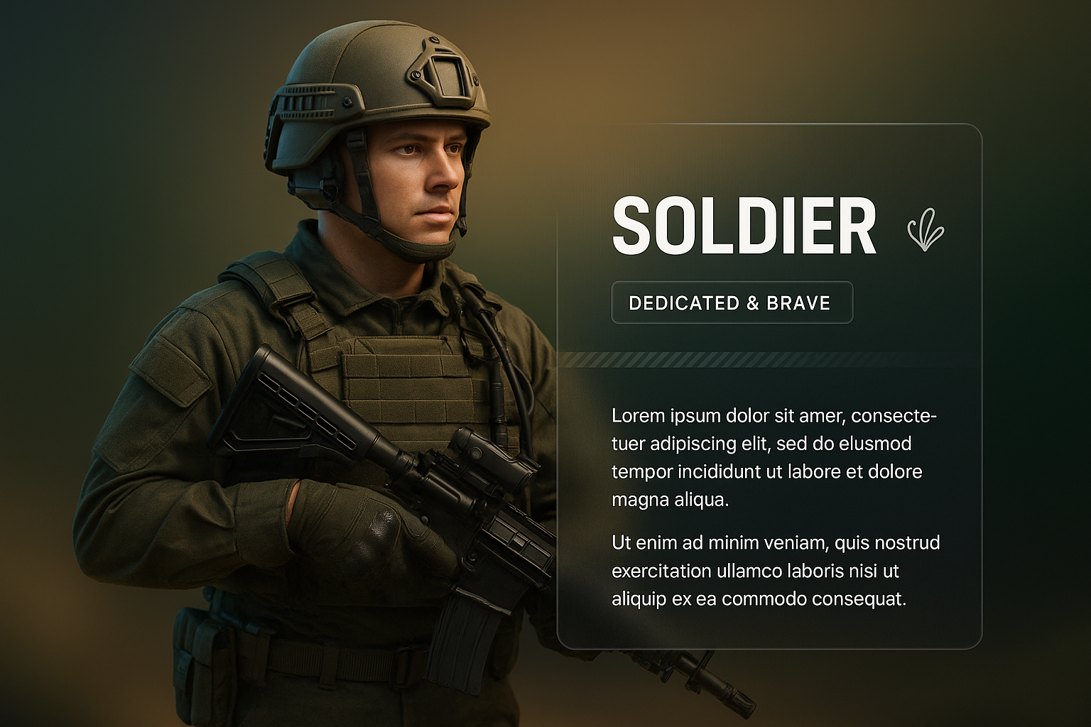 3D Soldier Illustration with Modern Web Design Elements