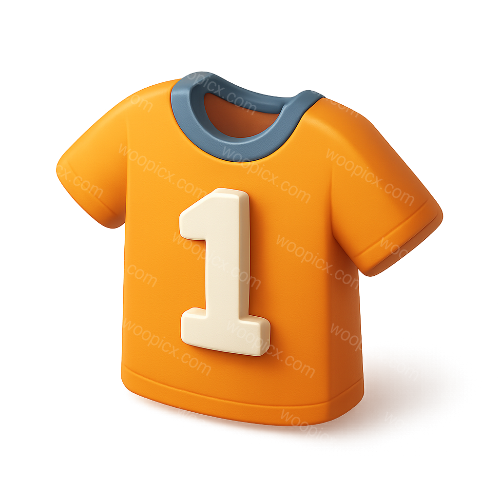 A vibrant 3D representation of an orange t-shirt featuring the number one prominently displayed. The design showcases a three-quarter view with a smooth, volumetric feel against a soft gradient background.