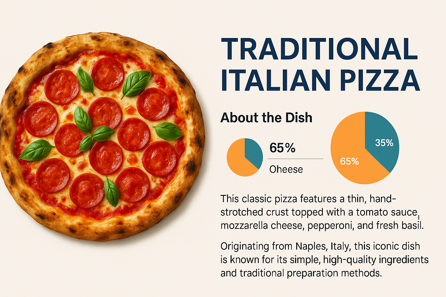 An engaging infographic detailing traditional Italian pizza, showcasing ingredients and preparation methods. Ideal for culinary blogs or food-related marketing.