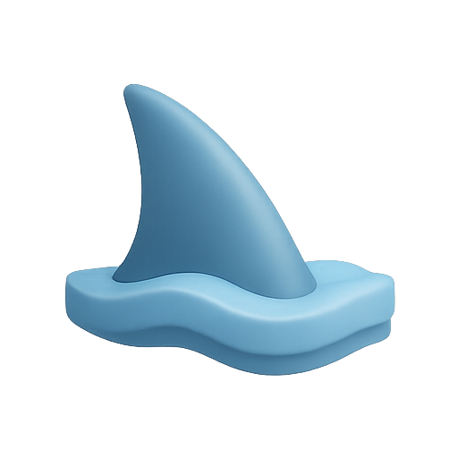 A playful 3D representation of a shark fin in a light blue color, ideal for children's toys or aquatic-themed designs, showcasing a smooth and modern aesthetic.