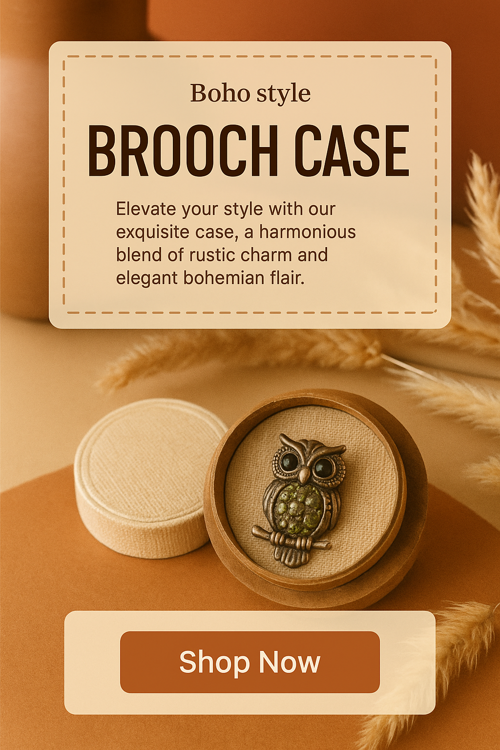 /Collection: /by davooda/Type: PNG/A visually appealing landing page slide featuring a boho-style brooch case. The design integrates earthy tones with a smooth gradient background, elevating the rustic charm.