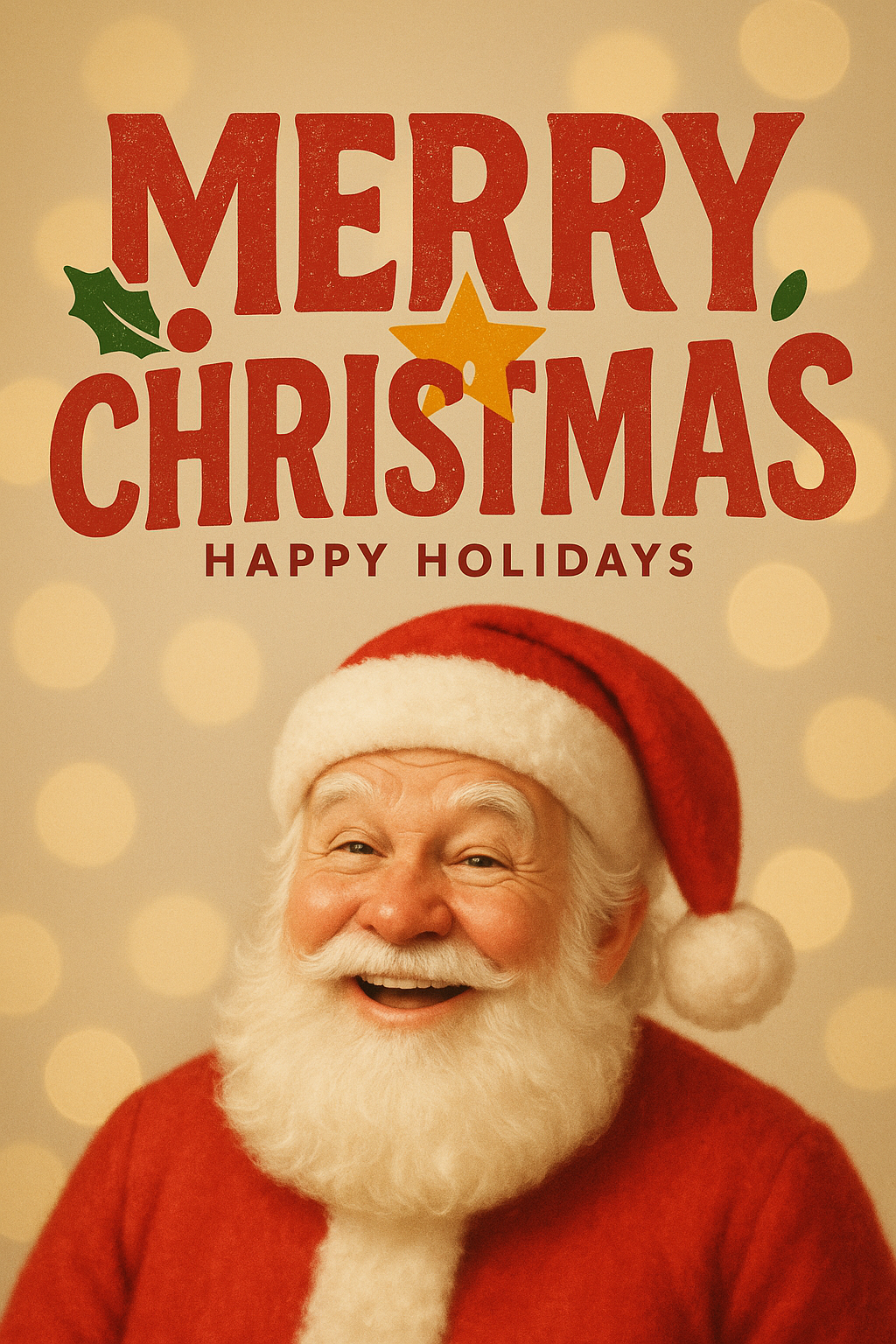 Cheerful holiday greeting card design showcasing Santa Claus with a warm smile, perfect for celebrating Christmas and spreading joy during the festive season.