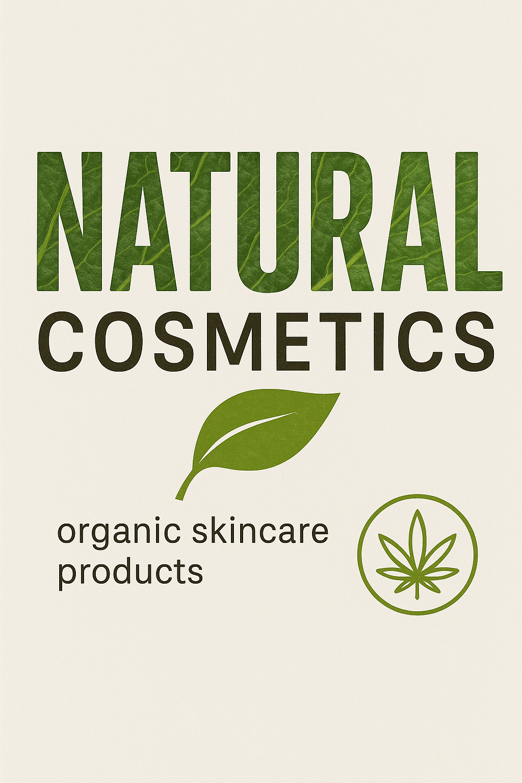 Stylish branding graphic for natural cosmetics featuring earthy tones and organic elements, ideal for eco-conscious skincare brands.