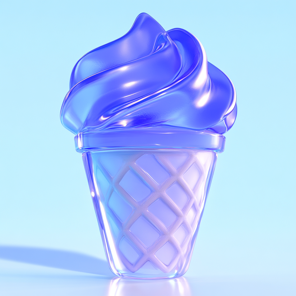 Stylized 3D Ice Cream Cone with Purple Swirl