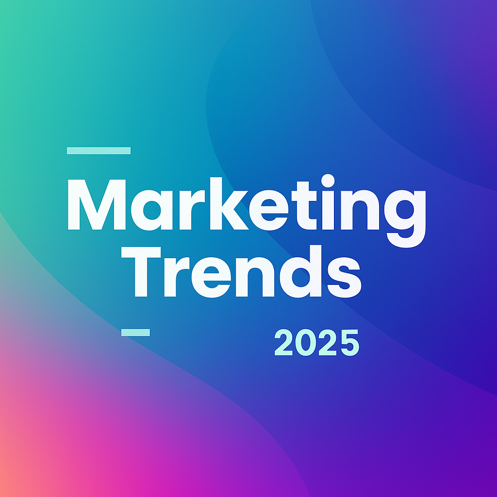 /Collection: /by davooda/Type: PNG/Vibrant graphic showcasing future marketing trends for 2025 with a smooth gradient background. Ideal for social media posts or presentations targeting marketers.