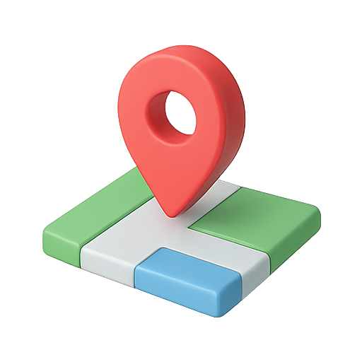 A 3D rendered icon featuring a location pin on a stylized map background. The vibrant colors and clean design make it ideal for navigation or location-based applications.