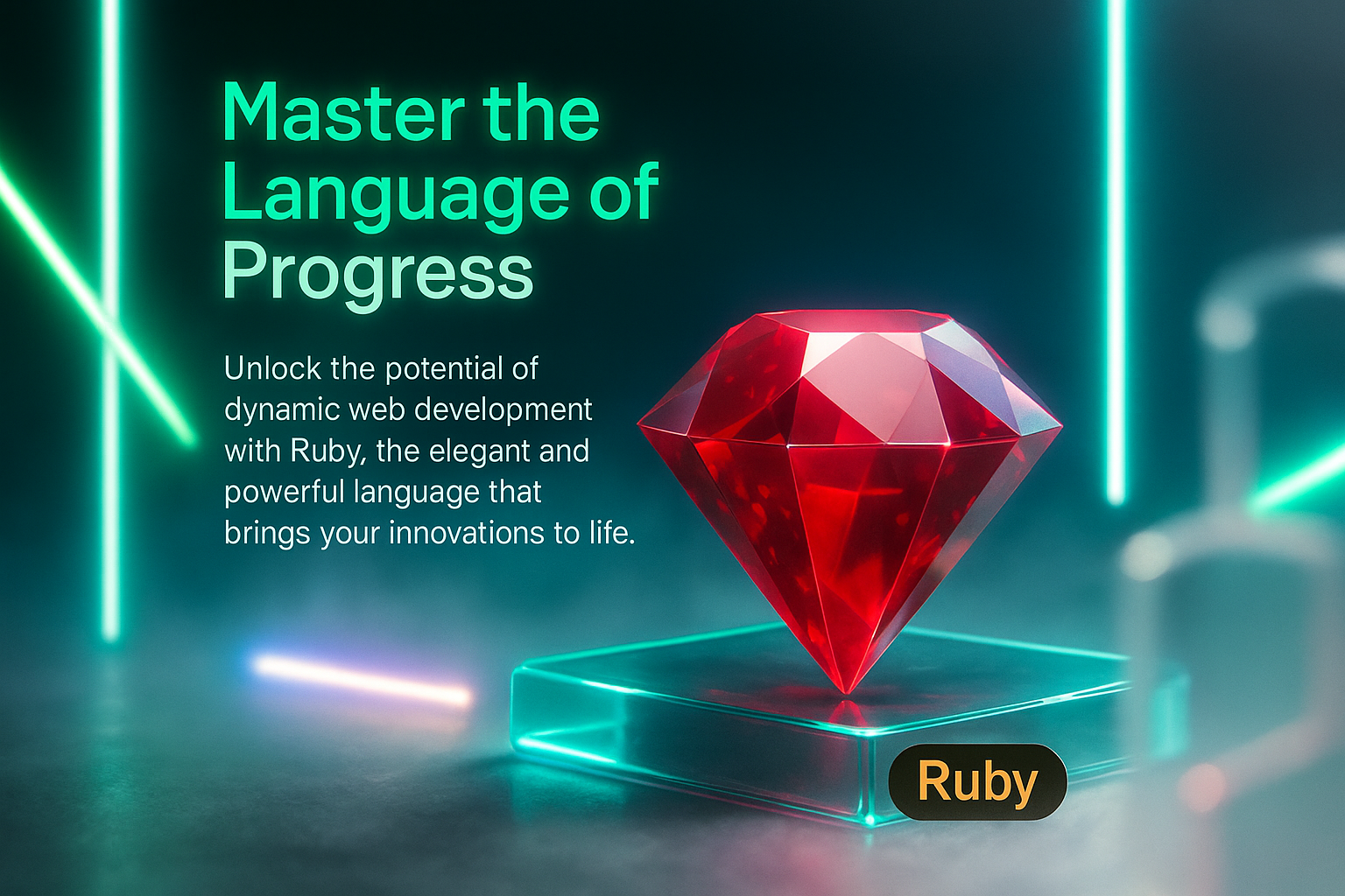 /Collection: /by davooda/Type: PNG/This image features a stunning ruby gem with neon accents in a professional LinkedIn carousel slide. The glowing elements enhance the visual appeal, while the text highlights key messages about mastering Ruby.