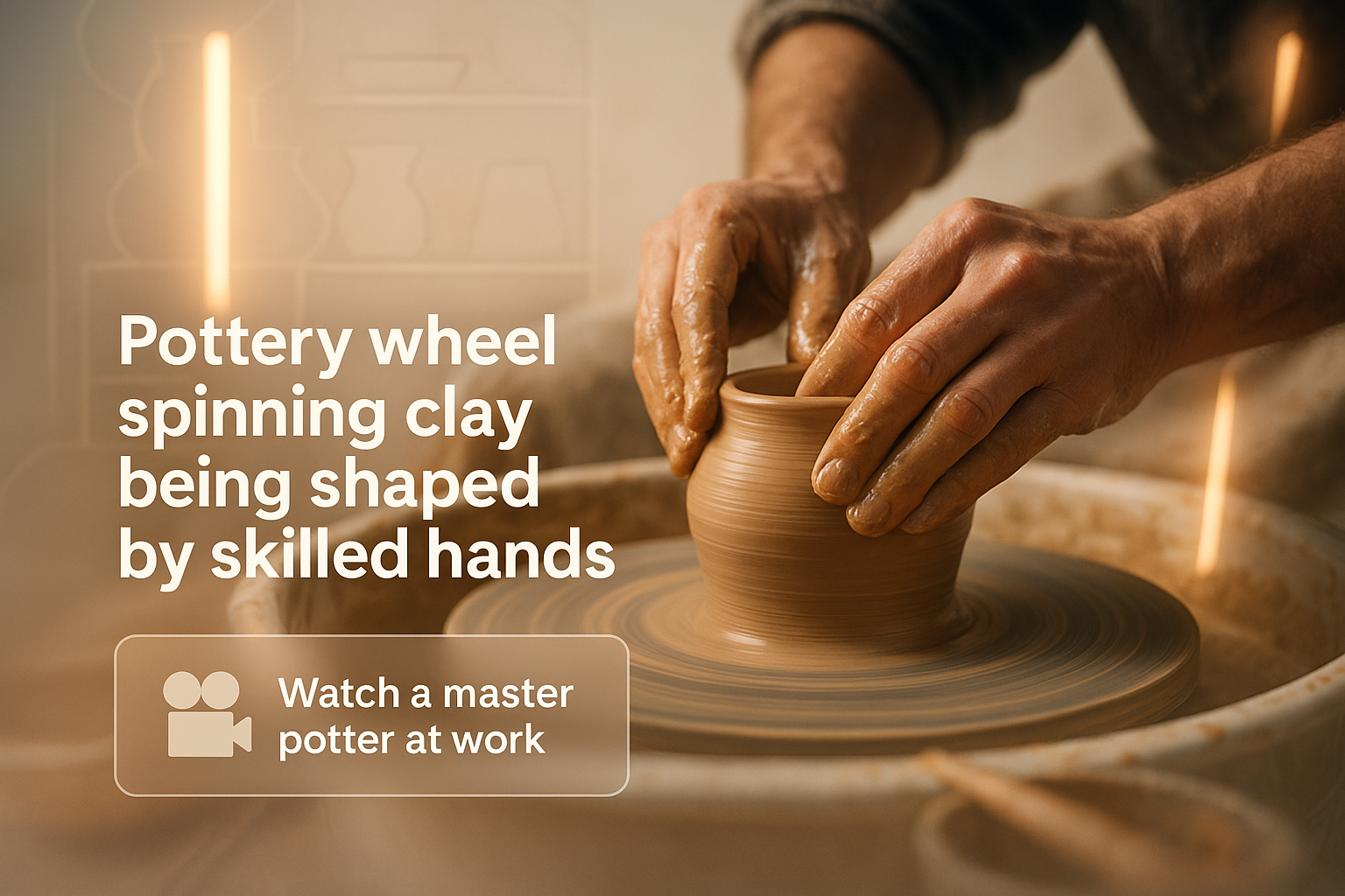 Captivating image of a potter shaping clay on a wheel, highlighting craftsmanship and skill. Ideal for pottery workshops, art classes, or crafting blogs.