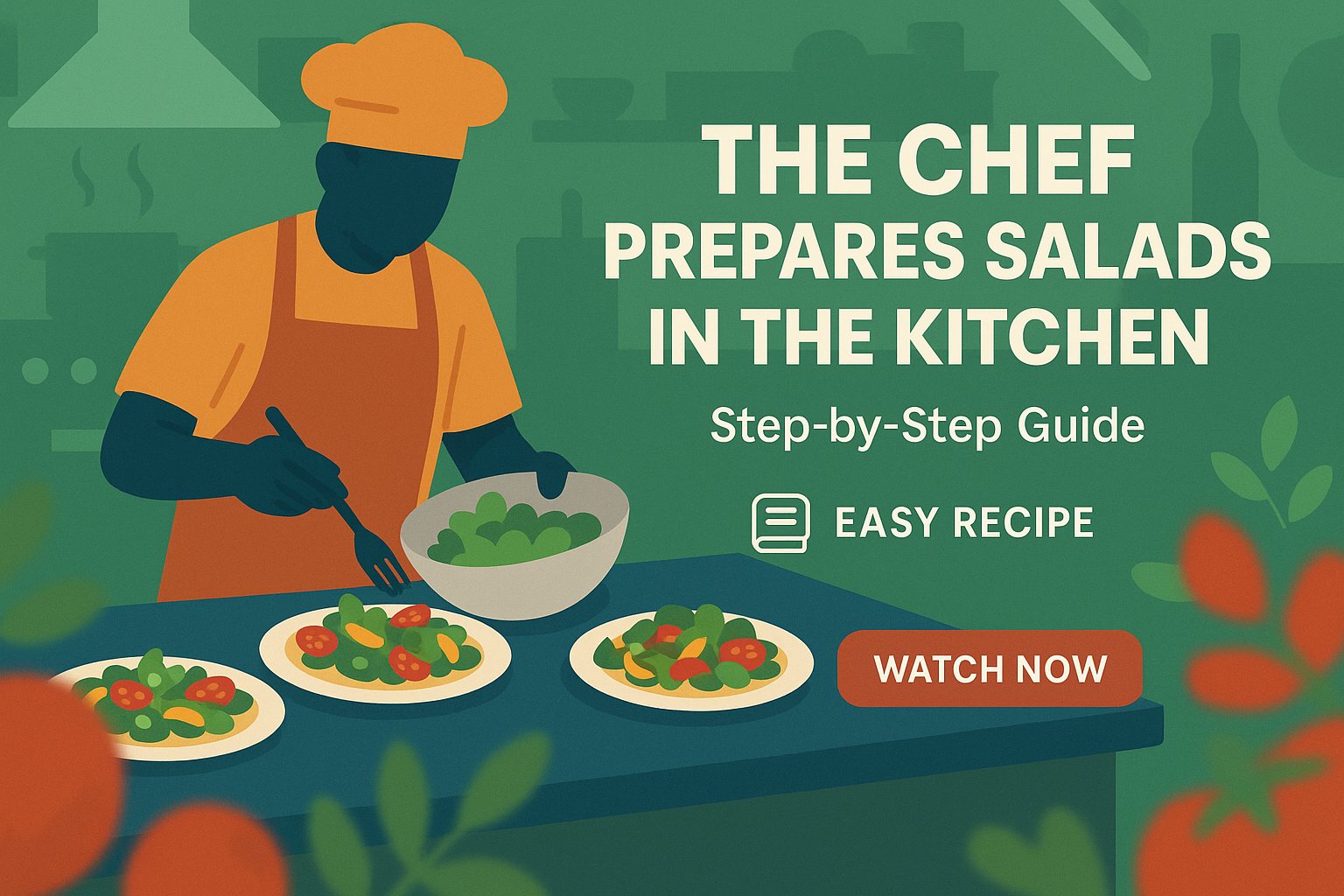 Illustrative Cooking Guide Featuring Chef Preparing Salads