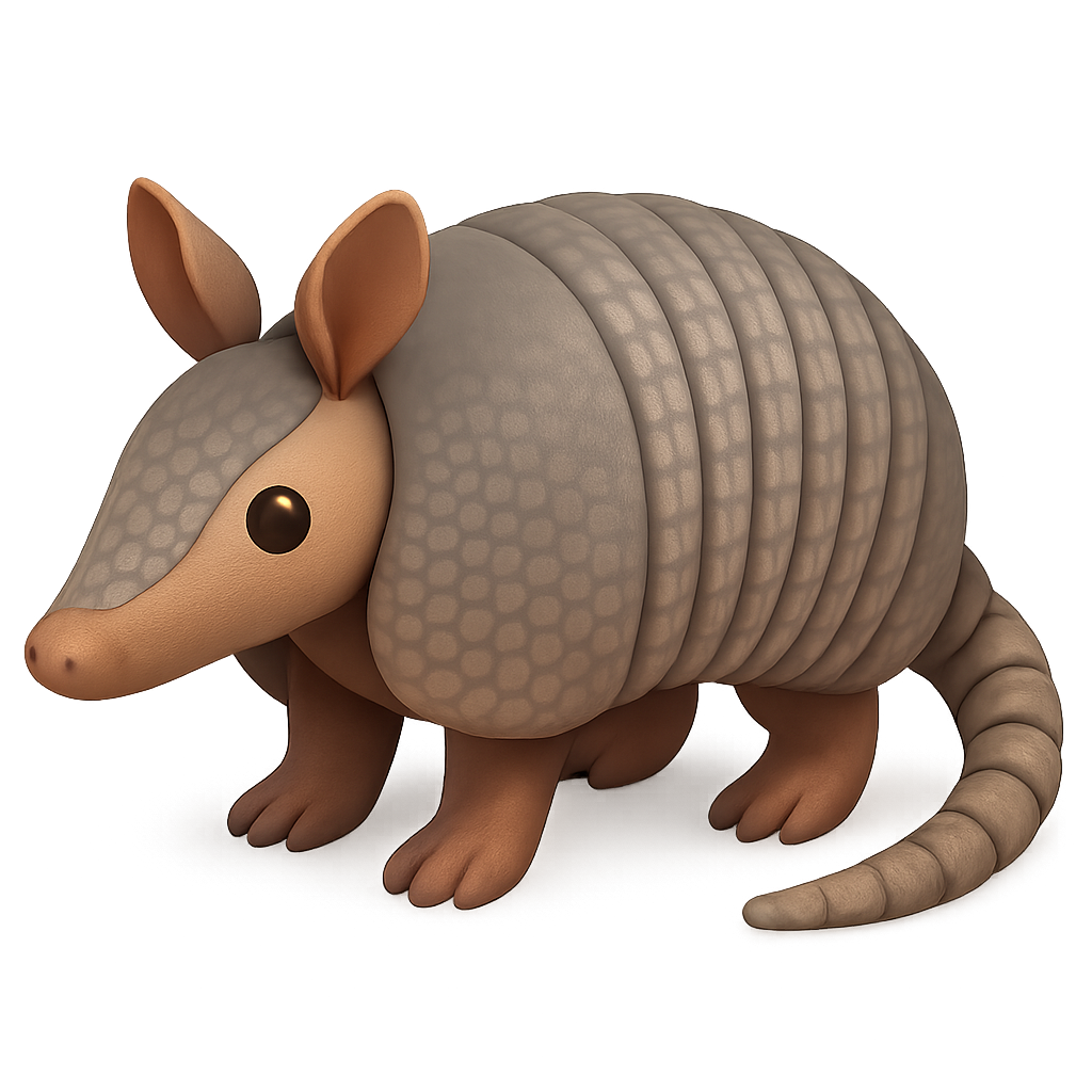 A stylized cartoon armadillo featuring a smooth texture and friendly expression, ideal for children's media or animation projects.