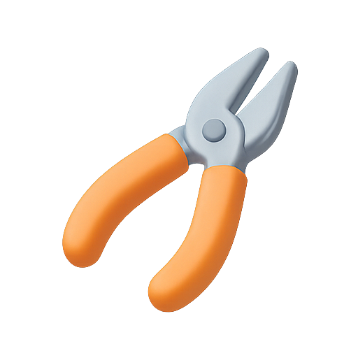 A close-up image of a pair of stylized craft pliers featuring orange rubber grips and metallic jaws, ideal for DIY projects and crafting.