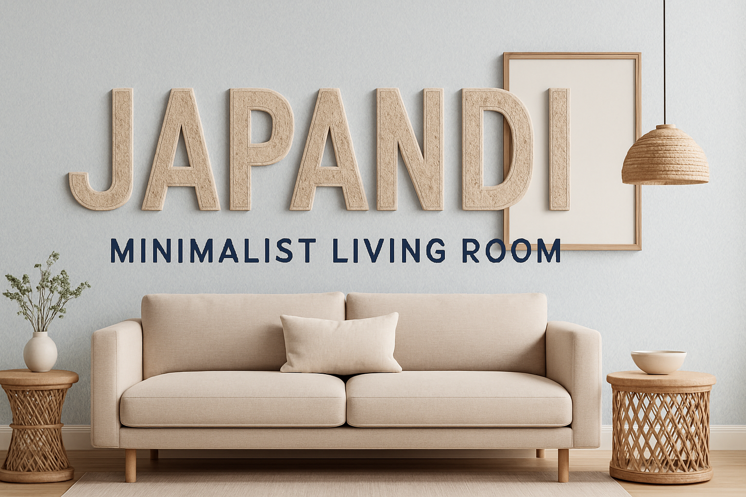 /Collection: /by davooda/Type: PNG/A chic minimalist living room showcasing Japandi design elements with a neutral color palette, featuring a comfortable sofa and decorative accents, ideal for home decor inspiration.